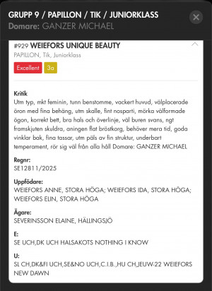 Kritiken var lång o delvis ganska bra men matte är ju inte alltid "Nöjd" Matte skall träna mig på att inte pussa de manliga domarna.